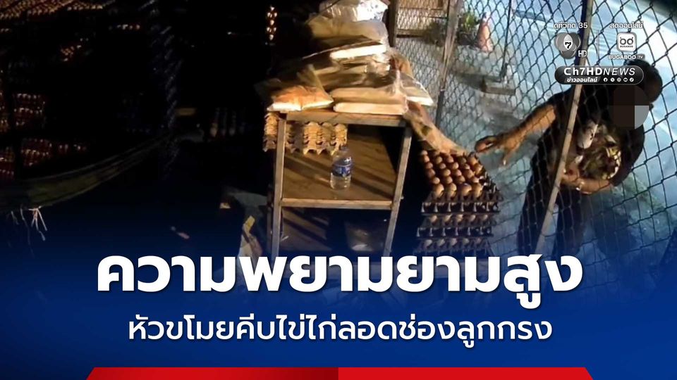 กล้องวงจรปิดจับภาพโจรมีความพยายามสูง ใช้นิ้วชี้ นิ้วกลางสอดช่องลูก คีบไข่ไก่ ขโมยไปกว่า 10 ฟอง