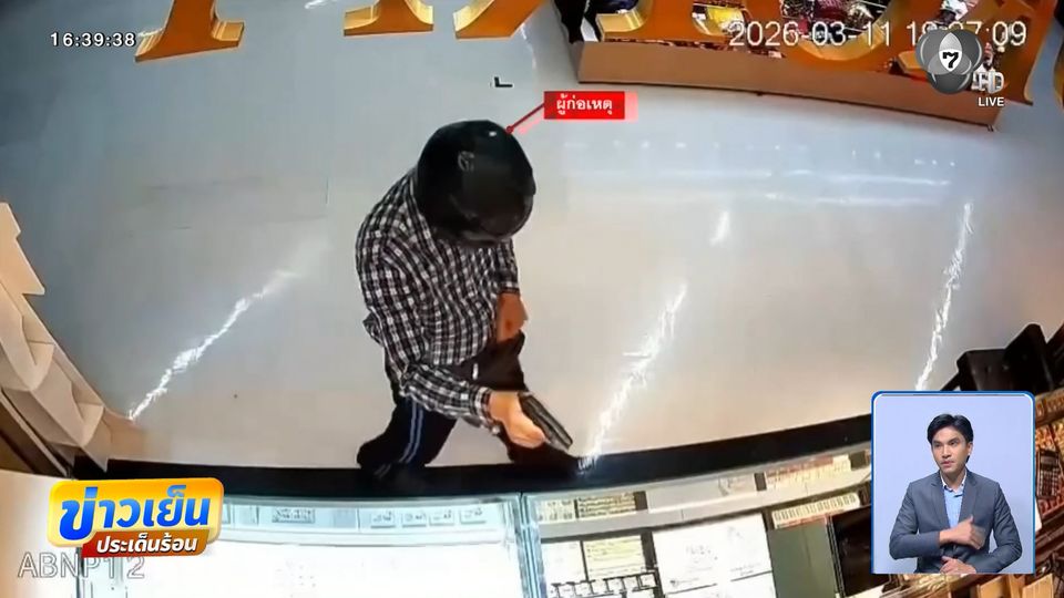 คนร้ายเป็นชาย สวมหมวกกันน็อคเต็มใบ เสื้อเชิ้ตแขนยาวลายสก๊อต กางเกงขายาวสีดำ บุกเข้าไปในร้านขายทองคำ ในห้างสรรพสินค้าแห่งหนึ่ง จังหวัดนครปฐม ชักปืนพกสั้น และถุงพลาสติกสีส้ม ออกจากกระเป๋าคาด จากนั้นจี้ให้พนักงานในร้านฯ หยิบทองคำให้