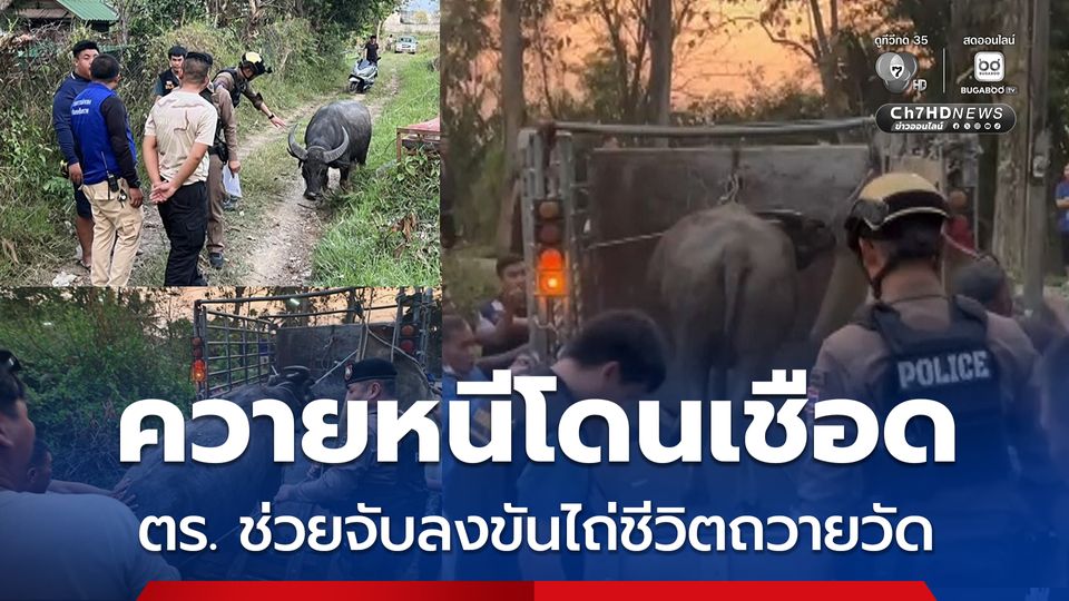 ควายวิ่งหนีตายจากการถูกเชือด ตำรวจวิ่งวุ่นช่วยจับหวั่นอันตราย สุดท้ายสงสารลงขันขอไถ่ชีวิตเพื่อนำไปถวายวัดเพื่อเป็นบุญกุศลต่อไป