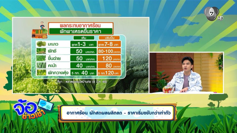 จ้อข่าวเช้า - อากาศร้อน ผักสดผลผลิตลด-ราคาเริ่มขยับกว่าเท่าตัว