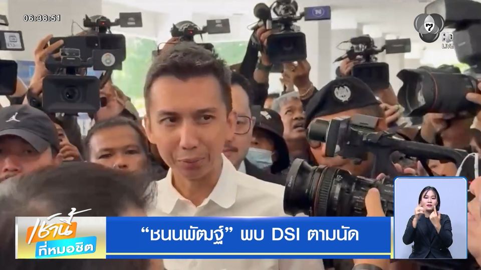 นัดหมาย 10.00 น. มาสายไปนิดหน่อย ถึง DSI เมื่อเวลา 10.57 น. พอมาถึงสื่อมวลชนก็เข้าไปรุมถาม นายชนนพัฒฐ์ นาคสั้ว สส.สงขลา เขต 4 พรรคกล้าธรรม ทันที โดยมีทนายความ และเจ้าหน้าที่ DSI พยายามจะเปิดทางให้ "สส.ชนนพัฒฐ์" ไปเข้าพบพนักงานสอบสวนตามกำหนด