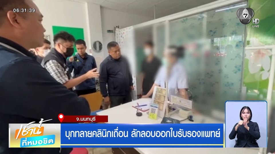 เช้านี้ที่หมอชิต - ตำรวจ สภ.รัตนาธิเบศร์ บุกทลายคลินิกเถื่อนที่จังหวัดนนทบุรี ลักลอบออกใบรับรองแพทย์ วันละ 50-60 ใบ