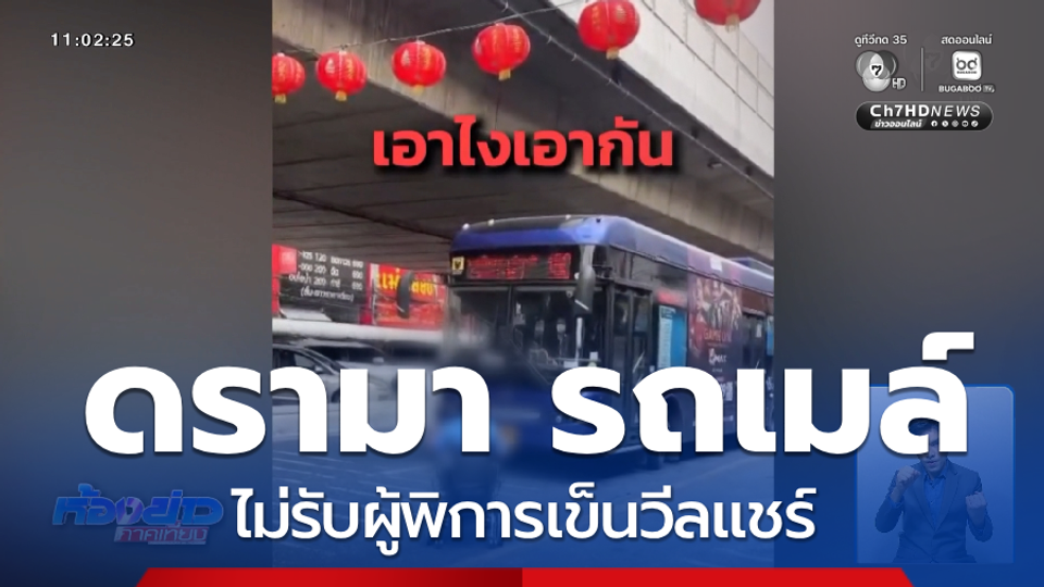 ห้องข่าวภาคเที่ยง - กลายเป็นประเด็นดรามา หลังชายคนหนึ่งถูกรถเมล์ปฏิเสธถึง 3 คัน เพียงเพราะเป็นผู้พิการนั่งวีลแชร์ ทำให้ชายคนนี้ตัดสินใจเข็นวีลแชร์ขวางรถเมล์ เพื่อให้จอดรับ