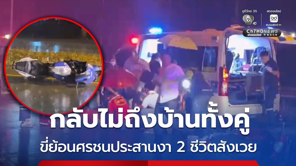 อุบัติเหตุสลด หนุ่มเลิกงานขี่รถ จยย. ฝ่าฝนกลับบ้าน ชนประสานงา กับลุงขี่รถ จยย. ย้อนศร เสียชีวิตทั้งคู่