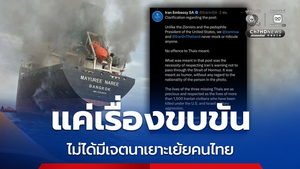 วันนี้ (13 มี.ค. 69) จากกรณีสถานเอกอัครราชทูตอิหร่านประจำแอฟริกาใต้ ได้โพสต์ภาพผ่านลูกเรือชาวไทยจากเรือ ‘มยุรี นารี’ ที่ถูกอิหร่านโจมตีในช่องแคบฮอร์มุซ เมื่อวันที่ 11 มีนาคมที่ผ่านมา พร้อมข้อความว่า “เมื่อคุณขับรถชน และกลัวคุณพ่อจนไม่กล้าจะกลับบ้าน…ช่องแคบฮอร์มุซ”
