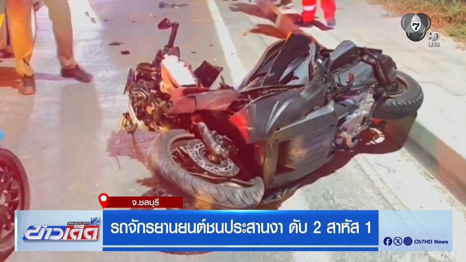 ข่าวเด็ด 7 สี - เช้ามืดวันนี้ เกิดเหตุรถชนกันสนั่นกลางดึก เป็นจักรยานยนต์ด้วยกันทั้ง 2 คัน กลางแยกทางเข้าศาลเจ้าพ่อ เสียชีวิต 2 คน สาหัส 1 คน
