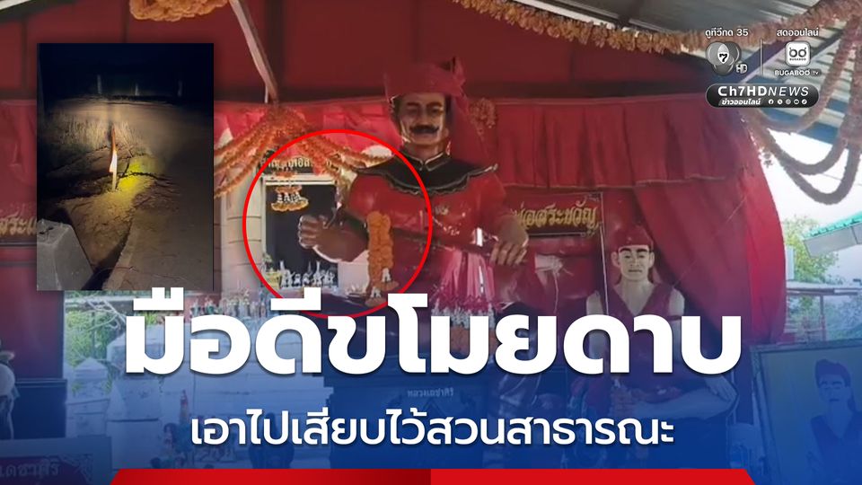 มือดีขโมยดาบเจ้าพ่อพระปรง องค์ประจำเมืองสระแก้ว สิ่งศักดิ์สิทธิ์คู่เมืองชายแดนบูรพา ลูกศิษย์เร่งติดตาม ล่าสุด คนงานพบเอาไปเสียบไว้บริเวณจุดก่อสร้างสวนสาธารณะ
