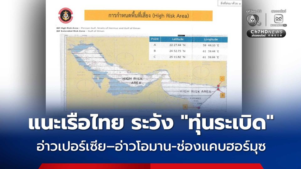 กองทัพเรือแจ้งเตือนภัยเพิ่มเติม แนะเรือไทยเพิ่มความระมัดระวัง “ทุ่นระเบิด” ในอ่าวเปอร์เซีย–อ่าวโอมาน และช่องแคบฮอร์มุซ