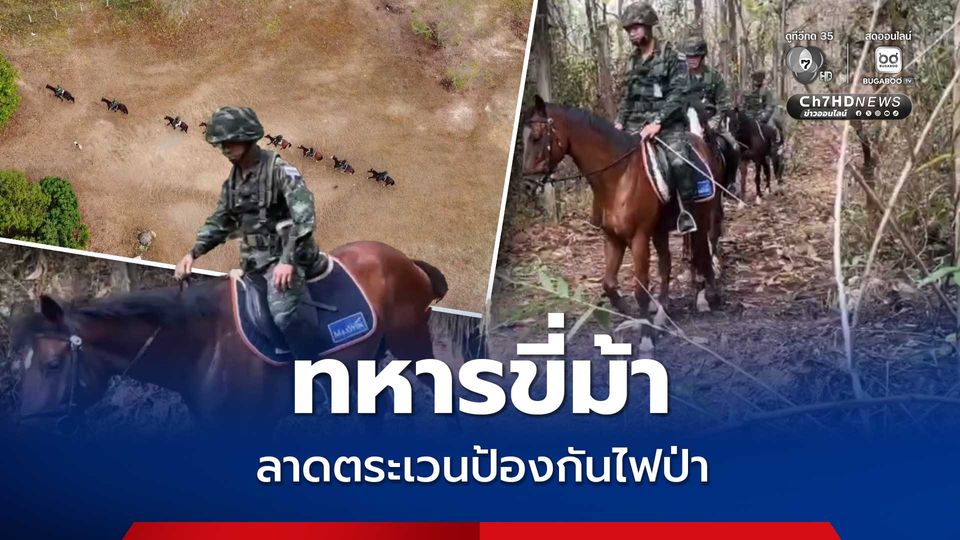 ทหารกองพันสัตว์ต่าง กรมการสัตว์ทหารบก นำม้ามาช่วยในการลาดตระเวนตรวจแนวกันไฟและพื้นที่เสี่ยงรอบป่ารอยต่ออุทยานแห่งชาติดอยสุเทพ-ปุย เพื่อเฝ้าระวังการจุดไฟเผาป่าเชิงรุก ตัดต้นตอปัญหาฝุ่นควันในพื้นที่ป่าที่เข้าถึงยาก