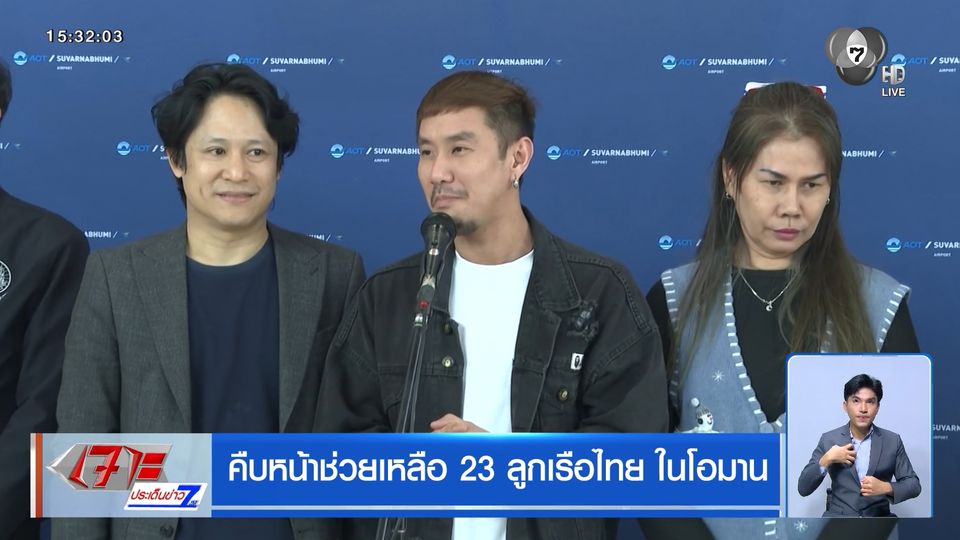 เจาะประเด็นข่าว 7HD - กระทรวงแรงงาน เผยความคืบหน้าการช่วยเหลือลูกเรือไทย 23 คน จากเหตุเรือสินค้าถูกโจมตีในน่านน้ำโอมาน ล่าสุดช่วยออกมาได้แล้ว 20 คน เตรียมเดินทางกลับไปไทย 16 มีนาคมนี้ ขณะที่อีก 3 คน ยังอยู่ระหว่างการเข้าช่วยเหลือ ยืนยันลูกเรือทุกคนจะได้รับค่าจ้าง และการดูแลสิทธิ์ประโยชน์อย่างเต็มที่