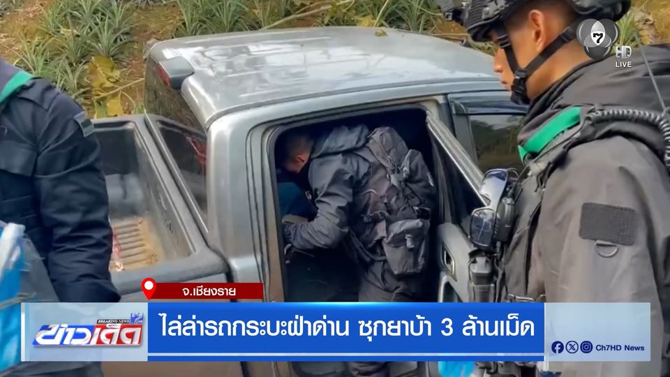 ข่าวเด็ด 7 สี - ทหารพรานไล่ล่ารถกระบะต้องสงสัยแหกด่านตรวจใน จังหวัดเชียงราย ก่อนคนขับทิ้งรถข้างทางหลบหนี เจอยาบ้าซุกซ่อนมาในรถ 3 ล้านเม็ด