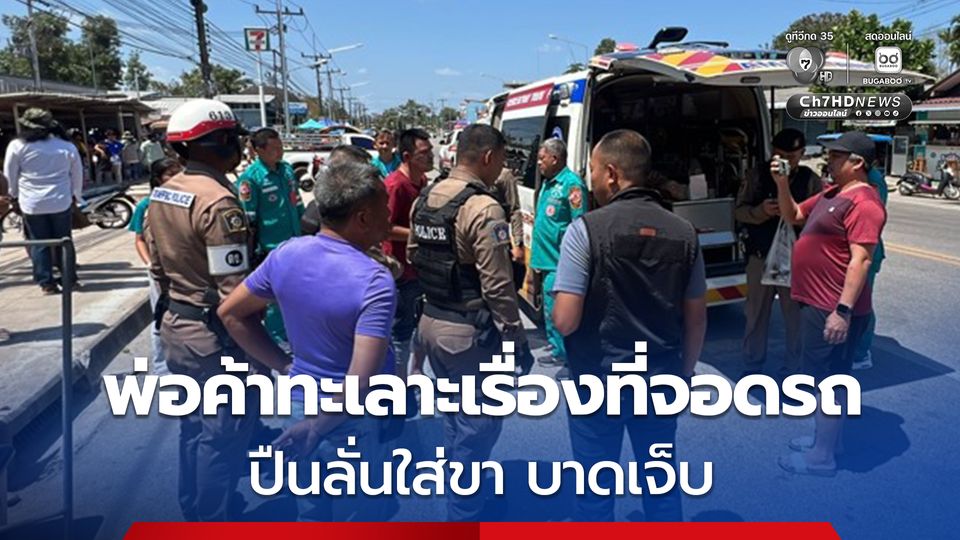 พ่อค้าทะเลาะกันเรื่องที่จอดรถ อีกฝ่ายควักปืนออกมา ยื้อแย่งปืนลั่นใส่ขาตนเอง บาดเจ็บ