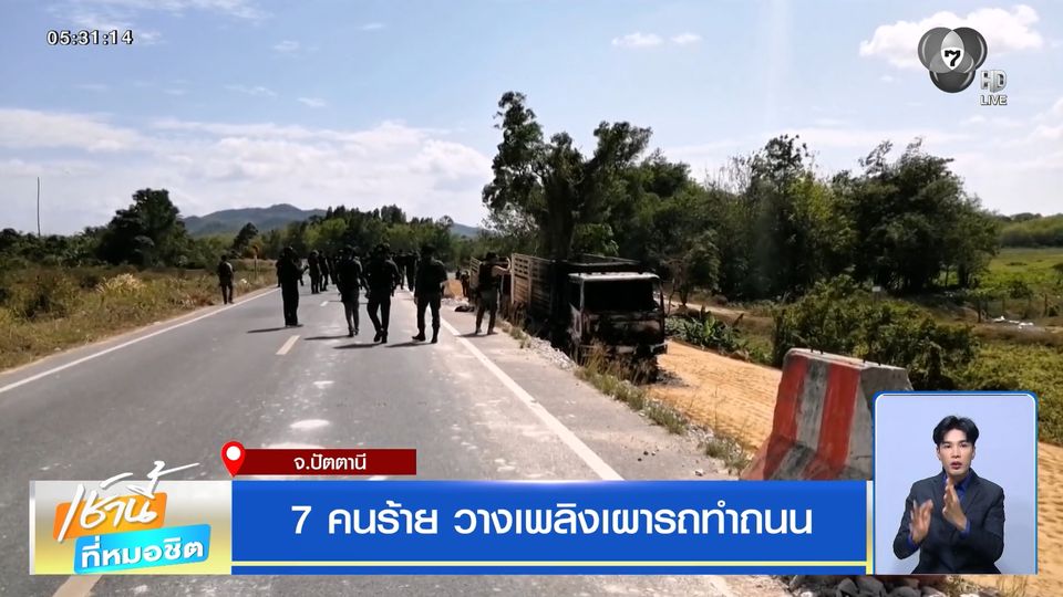 เช้านี้ที่หมอชิต - 7 คนร้าย เดินลัดทุ่ง จับพนักงานรักษาความปลอดภัย วางเพลิงรถบรรทุกและรถบดถนน 3 คัน ที่จังหวัดปัตตานี