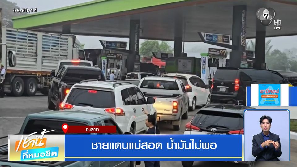ปั๊มน้ำมันในพื้นที่ 5 อำเภอชายแดนจังหวัดตาก โดยเฉพาะแม่สอด ซึ่งติดกับเมียนมา มีรถบรรทุกขนาดใหญ่ รถการเกษตร รถยนต์ส่วนบุคคล รวมถึงรถจักรยานยนต์ ทั้งชาวอำเภอแม่สอดและอำเภอข้างเคียง มาจอดต่อคิวเติมน้ำมันตั้งแต่ตี 5 จนแถวยาวกว่า 2 กิโลเมตร