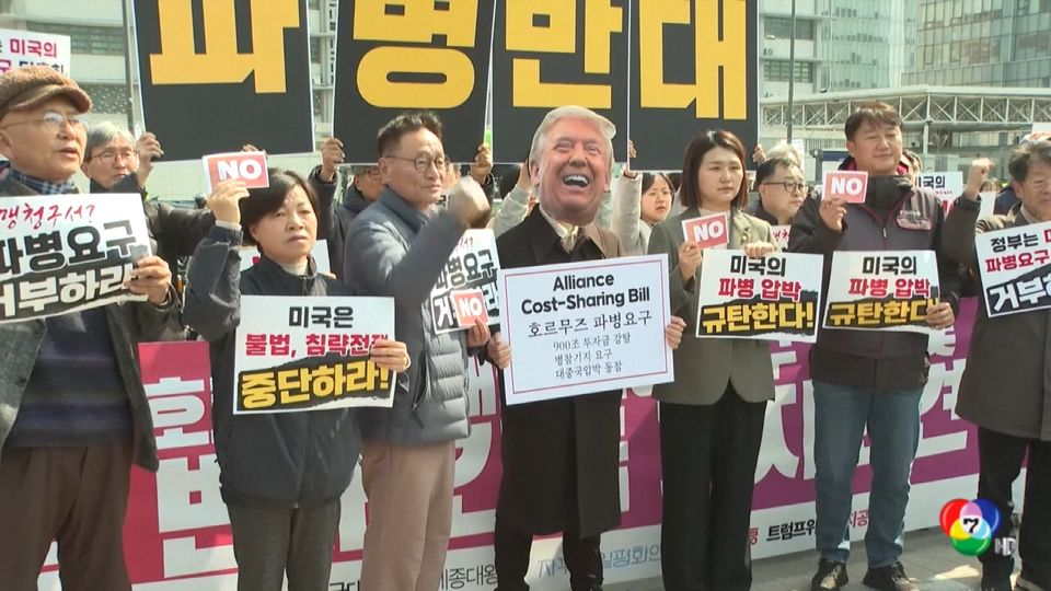 ชาวเกาหลีใต้ประท้วง "โดนัลด์ ทรัมป์" กรณีกดดันให้ 7 ประเทศ ร่วมส่งเรือรบและกองกำลังคุ้มกันเรือสินค้าและเรือบรรทุกน้ำมันในช่องแคบฮอร์มุซ