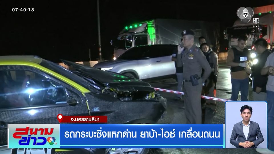 สนามข่าว 7 สี - รถกระบะแหกด่าน ซิ่งหนี พุ่งข้ามเกาะกลางถนน เทกระจาดทั้งไอซ์และยาบ้ากว่า 2 ล้านเม็ด กระจายเกลื่อนถนนเป็นหลักฐานมัดตัวคนขับดิ้นไม่หลุด