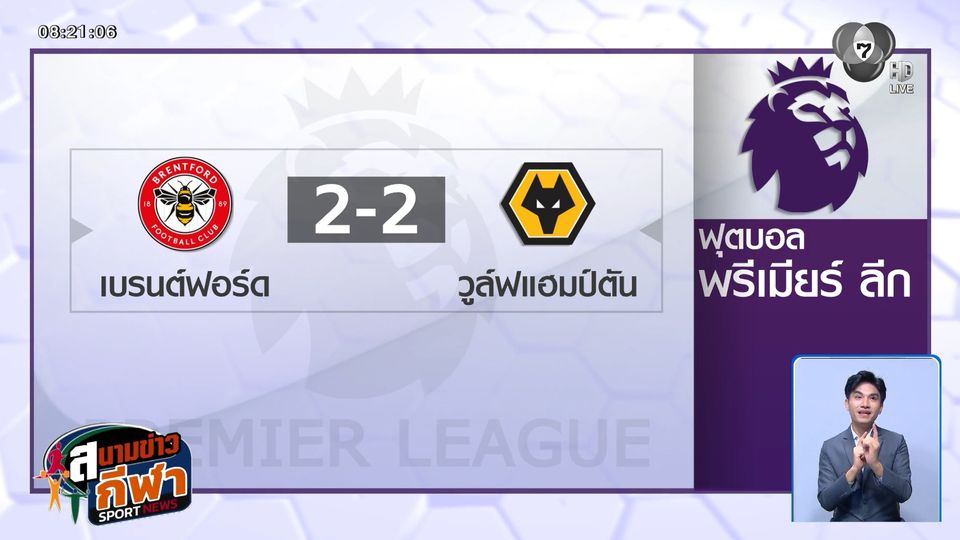 สนามข่าวกีฬา - ผลฟุตบอลพรีเมียร์ลีก อังกฤษ วูล์ฟแฮมป์ตัน ยังไม่ยอมตกชั้นง่าย ๆ ไล่ตีเสมอ เบรนท์ฟอร์ด เก็บ 1 คะแนน สำเร็จ