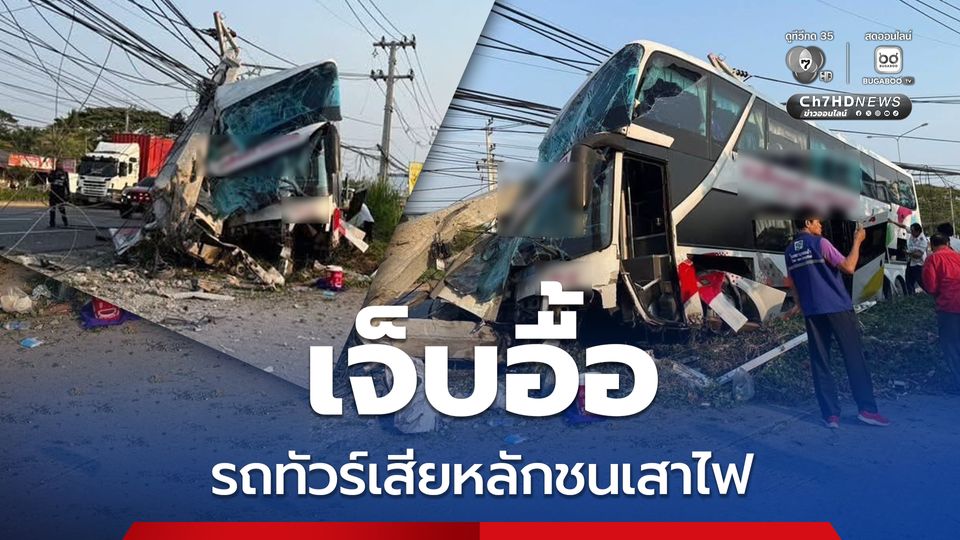 ชะอำ รถทัวร์เสียหลักชนเสาไฟ ขับมาจากกรุงเทพฯ มุ่งหน้าเขาเต่า ผู้โดยสารบาดเจ็บเป็นจำนวนมาก