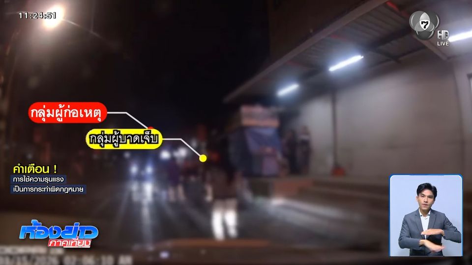 คลิปนี้ได้จากกล้องหน้ารถบันทึกภาพ ขณะกลุ่มผู้ก่อเหตุเป็นชายวัยรุ่นประมาณ 20 คน ชักมีดวิ่งไล่ทำร้ายร่างกายฝั่งผู้เสียหาย วัยรุ่นชาย 4 คน ที่มาซื้อของร้านสะดวกซื้อ ได้รับบาดเจ็บ