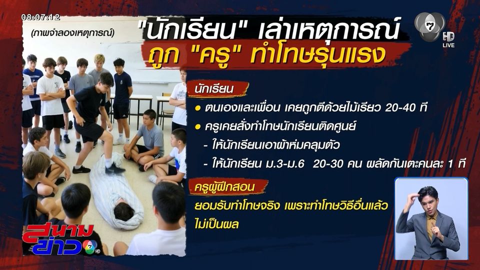 สนามข่าว 7 สี - มาอีกแล้วการลงโทษตีนักเรียน เมื่อแม่คนหนึ่งไม่ทน - พาลูกชาย มาขอความช่วยเหลือกับตำรวจสอบสวนกลาง อยากให้เอาผิดกับ "ครู" ที่ลงโทษตีลูกชายเกินกว่าเหตุ