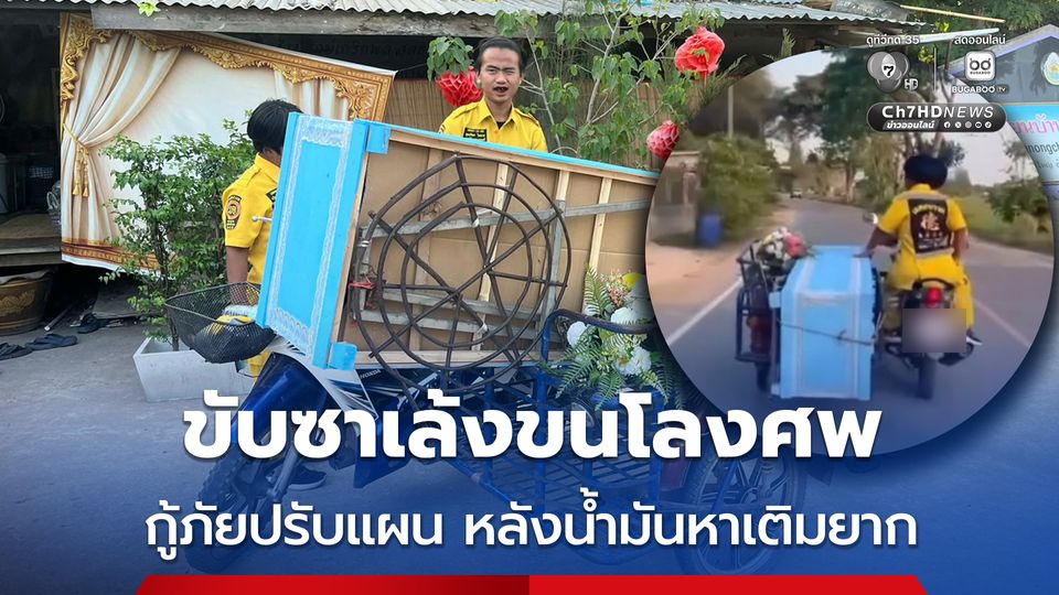 ภายใต้ข้อจำกัดด้านพลังงาน เจ้าหน้าที่ตัดสินใจใช้รถจักรยานยนต์พ่วงข้างในการขนส่งโลงศพ แทนรถยนต์ เพื่อประหยัดน้ำมัน และลดค่าใช้จ่ายในการปฏิบัติงาน ก่อนนำส่งถึงบ้านผู้เสียชีวิตได้อย่างปลอดภัย ท่ามกลางความซาบซึ้งของญาติและชาวบ้านในพื้นที่