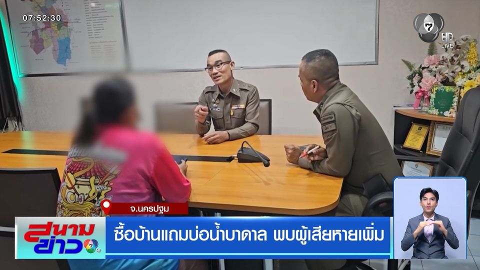นางกฤตติกา แม่ค้าขายก๋วยเตี๋ยว พร้อมเพื่อนบ้าน เดินทางเข้าพบตำรวจ สภ.เมืองนครปฐม เพื่อให้ปากคำ หลังจากไม่ได้ข้อยุติเรื่องบ่อบาดาลใต้พื้น