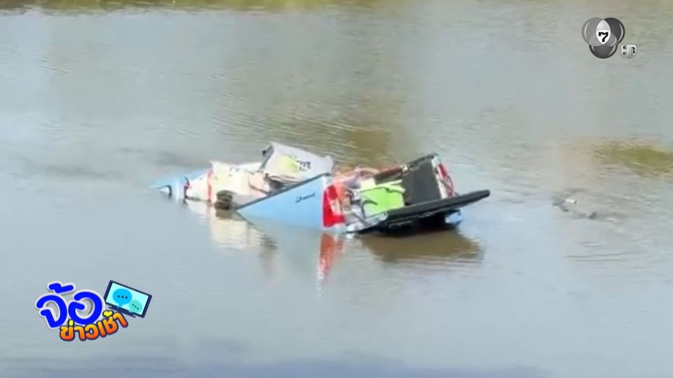 รถกระบะไหลตกสระน้ำ