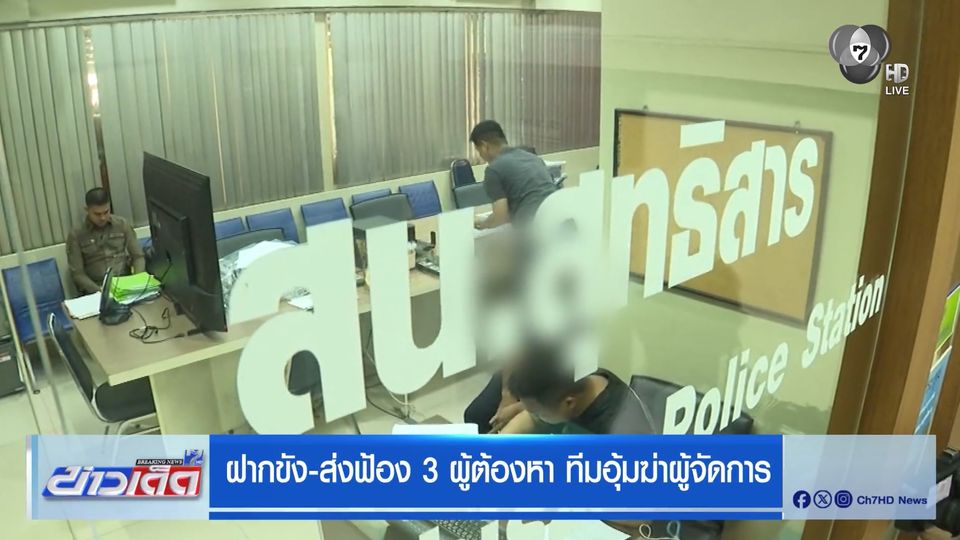 ข่าวเด็ด 7 สี - ตำรวจคุมตัวผู้ต้องหาชายที่อายุเกิน 18 ปี 2 คน ทีมอุ้มฆ่าหนุ่มผู้จัดการ ไปขออำนาจศาลฯ ฝากขัง ผู้ต้องหายืนยันถูกหลอกใช้บังคับอุ้มศพ
