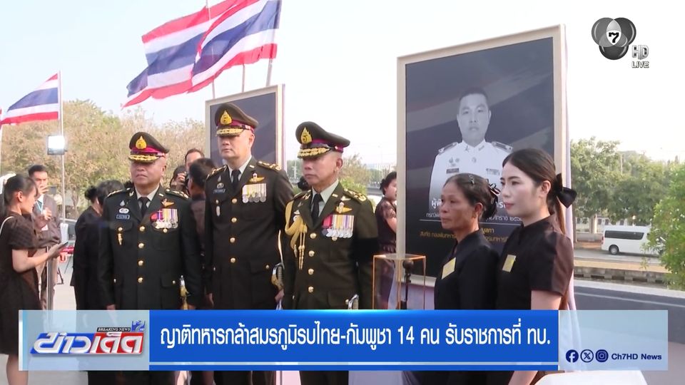 ข่าวเด็ด 7 สี - กองทัพไทย บรรจุญาติ 14 คนของทหารกล้าที่เสียชีวิตในการพิทักษ์อธิปไตยชายแดนไทย-กัมพูชา รับราชการทดแทน เพื่อเชิดชูวีรบุรุษชายแดนไทย-กัมพูชา