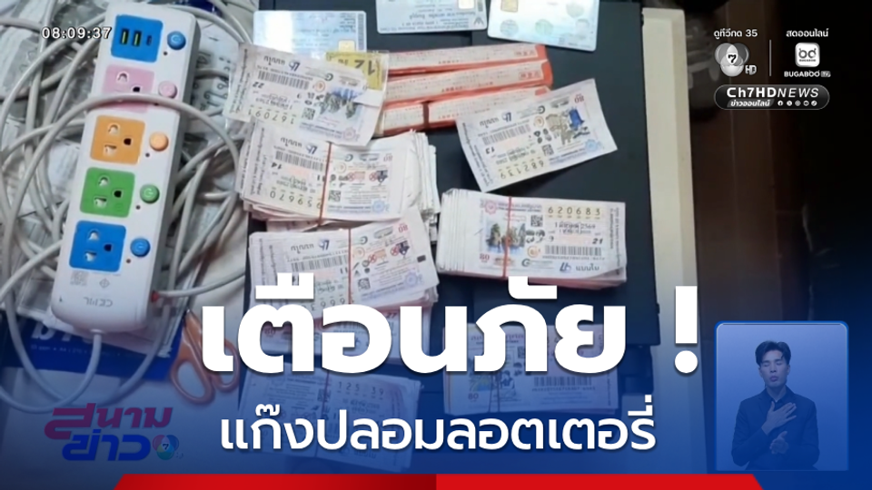 สนามข่าว 7 สี - เตือนภัย คนรับซื้อลอตเตอรี่ถูกรางวัล ระวังแก๊งปลอมลอตเตอรี่ เน้นปลอมเลขหน้า 3 ตัว กับเลขท้าย 3 ตัว ทำให้ผู้รับซื้อ เกือบถูกดำเนินคดี ขณะนำไปขึ้นเงินที่สำนักงานสลากฯ