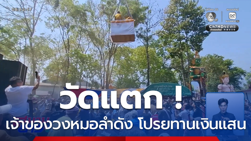 สนามข่าว 7 สี - วัดแทบแตก แม่ครูหอมหวนเจ้าของวงหมอลำดัง ขนเงินโปรยทานลอยฟ้าแจกชาวบ้านนับแสนบาท