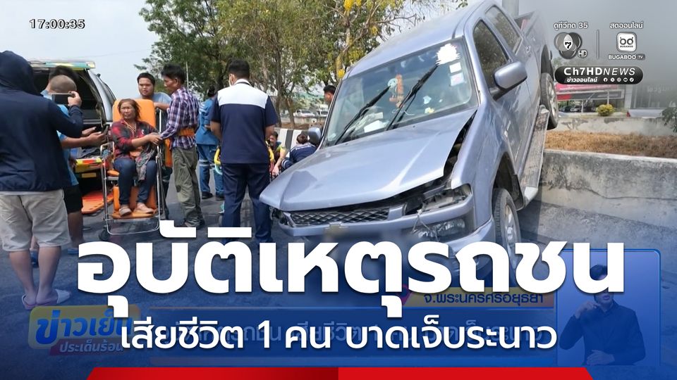 ข่าวเย็นประเด็นร้อน - เกิดอุบัติเหตุรถเฉี่ยวชนกัน ที่จังหวัดพระนครศรีอยุธยา มีผู้เสียชีวิต 1 คน บาดเจ็บเกือบ 10 คน