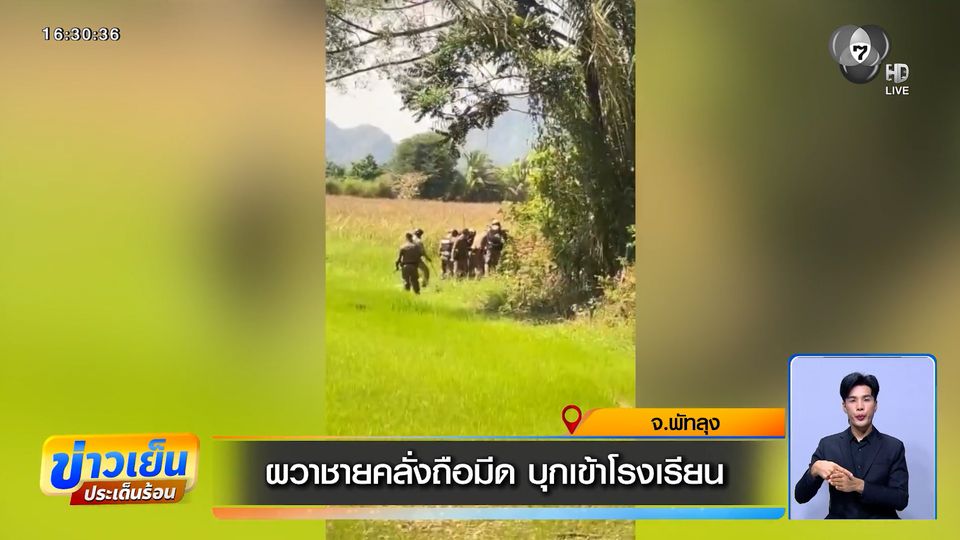 ข่าวเย็นประเด็นร้อน - เหตุการณ์ที่ชายถือมีดบุกโรงเรียนแห่งหนึ่งที่จังหวัดพัทลุง ทำให้ครูและนักเรียนตกใจ หวาดผวา รีบแจ้งตำรวจเข้าระงับเหตุ และรวบตัวได้ทันควัน