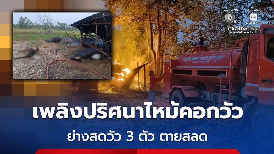 สลด เพลิงปริศนาไหม้คอกวัว ไฟครอกวัวตาย 3 ตัว ลูกวัวเพศเมียอายุ 3 เดือน รอด เพราะลอดคอกออกมาได้ เจ้าของมึนสาเหตุ ไม่มีไฟฟ้า ไม่ได้ก่อไฟ เกิดเพลิงไหม้ได้อย่างไร