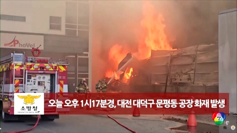 เกิดเหตุเพลิงไหม้โรงงานผลิตชิ้นส่วนรถยนต์ในเมืองแทจอน ของเกาหลีใต้ มีผู้บาดเจ็บอย่างน้อย 50 คน