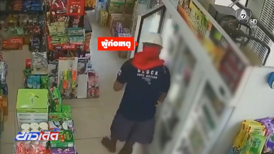 ภาพจากกล้องวงจรปิด ชายสวมผ้าคลุมใบหน้า คล้ายโม่งแดงเข้ามาลักขโมยเบียร์ไป 1 ขวด ใส่เป้ แล้วทำทีเป็นเลือกหาซื้อ น้ำดื่มอีก 1 ขวด เจ้าของร้านกำลังสาละวนคิดเงินลูกค้าคนอื่นอยู่ มาเปิดดู โจรไม่เนียนคนนี้ หยิบเบียร์ขวดที่แพงออกไปหน้าตาเฉย คิดว่าคนมองไม่เห็น ทำทีหันหลังให้กล้อง เจ้าของโอดครวญว่า กำไรหมดเลยวันนี้