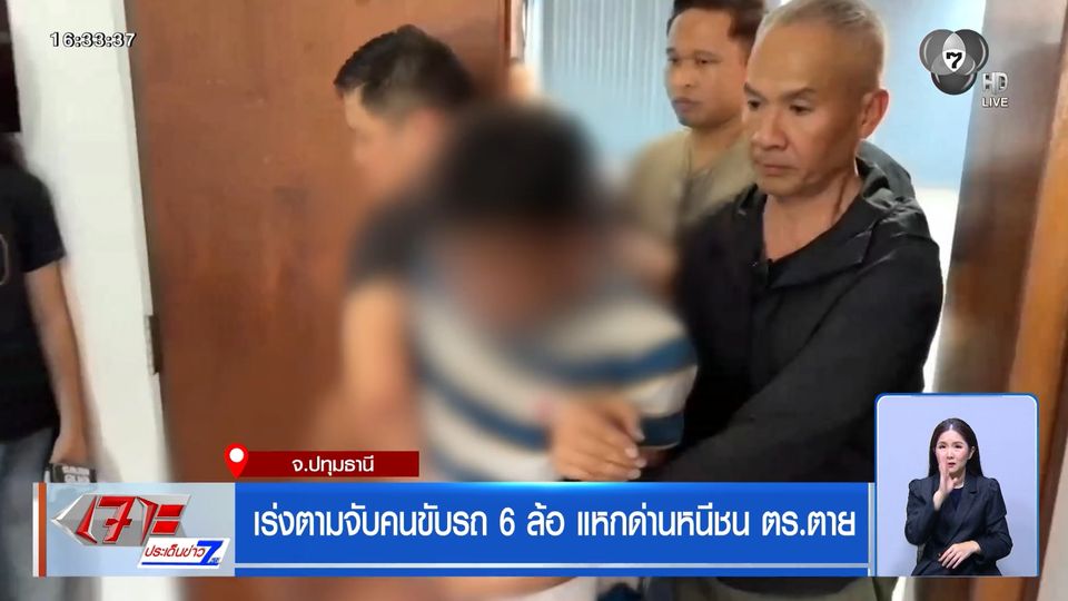 เจาะประเด็นข่าว 7HD - ตำรวจ สภ.ธัญบุรี ตั้งด่านอยู่บริเวณถนนเลียบมอเตอร์เวย์ คลอง 5 แล้วก็มีรถบรรทุก 6 ล้อ ขับเข้ามาแล้วแหกด่านหนี ตำรวจ 2 นาย ขี่รถจักรยานยนต์ไล่ตาม ถูกเบียดกระเด็นชนเสาไฟฟ้า เป็นเหตุให้มีตำรวจเสียชีวิต 1 นาย บาดเจ็บ 1 นาย ส่วนคนก่อเหตุหนีไปได้ติดต่อมอบตัวแล้ว
