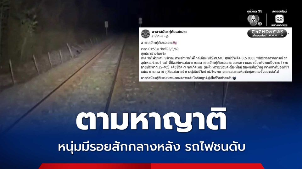 วันนี้ (22 มี.ค. 69) จากที่เพจอาสาสมัครกู้ภัยแม่เมาะ ได้ลงโพสต์เพื่อติดตามหาญาติของผู้เสียชีวิต โดยระบุว่าเมื่อเวลา 01:53 น. วันที่ 22/3/69 ตำรวจ สภ.แม่เมาะ อ.แม่เมาะ จ.ลำปาง รับแจ้งเหตุรถไฟชนคนเสียชีวิตที่บริเวณ ทางข้ามรถไฟใกล้เคียง บริษัทแห่งหนึ่ง ใน ต.แม่เมาะ อ.แม่เมาะ จ.ลำปาง จึงรุดไปที่เกิดเหตุพร้อมด้วยเจ้าหน้าที่งานป้องกันฯ แม่เมาะ และอาสาสมัครกู้ภัยแม่เมาะ