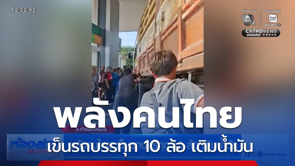 พลังคนไทย เข็นรถบรรทุก 10 ล้อ เติมน้ำมัน จ.กำแพงเพชร