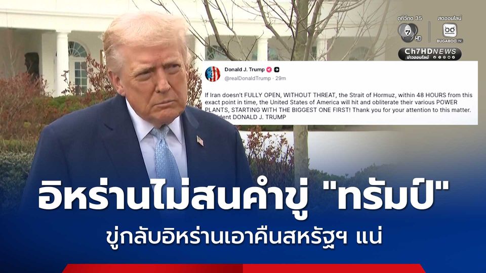 อิหร่านไม่สนคำขู่ “โดนัลด์ ทรัมป์” ให้เปิดช่องแคบฮอร์มุซใน 48 ชม. พร้อมขู่กลับหากโรงไฟฟ้าของอิหร่านถูกโจมตี ทางอิหร่านก็จะเอาคืนสหรัฐฯ เช่นกัน