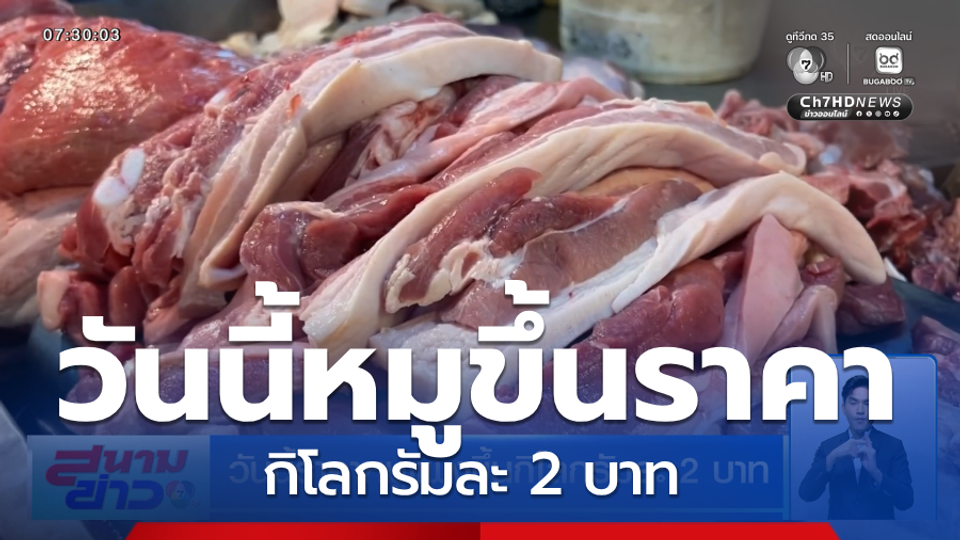 สนามข่าว 7 สี - ราคาหมูสดหน้าฟาร์ม ปรับขึ้น 2 บาทต่อกิโลกรัมวันนี้ หลังต้นทุนและราคาน้ำมันที่ใช้ในการขนส่งเพิ่มสูงขึ้น ด้านผู้ประกอบการร้านอาหารที่ใช้หมูเป็นวัตถุดิบ ยังตรึงราคาช่วยลูกค้า และขอดูสถานการณ์ไปก่อน