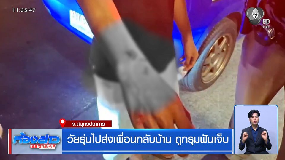 ห้องข่าวภาคเที่ยง - ไปที่สมุทรปราการ มีวัยรุ่น 2 คน กำลังขี่รถจักรยานยนต์ไปส่งเพื่อนกลับบ้าน แต่ระหว่างทางเจอวัยรุ่นอีกกลุ่มดักฟันบาดเจ็บ พลเมืองดีถ่ายคลิปวิดีโอเอาไว้ได้