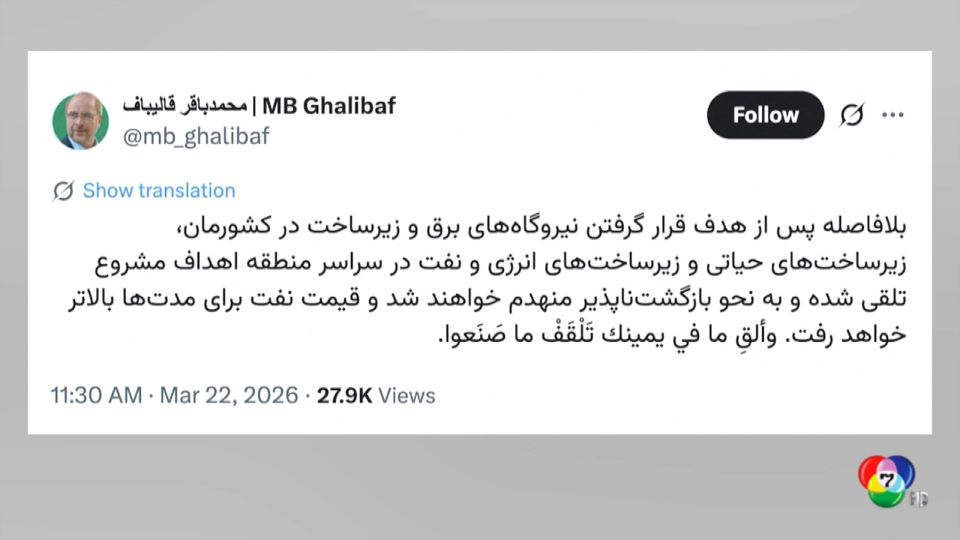 จากกรณีที่ประธานาธิบดีโดนัลด์ ทรัมป์ แห่งสหรัฐฯ กำหนดเส้นตายให้อิหร่านเปิดช่องแคบฮอร์มุซโดยไม่มีเงื่อนไข ภายใน 48 ชั่วโมง หรือช่วงก่อน 7 โมงเช้าพรุ่งนี้ (24 มี.ค.) ตามเวลาประเทศไทย มิเช่นนั้นจะโจมตีโรงไฟฟ้าที่ใหญ่ที่สุดของของอิหร่านนั้น