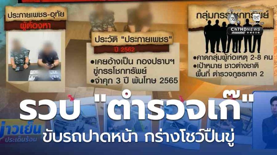 ข่าวเย็นประเด็นร้อน - ผู้เสียหายขับรถไปอยู่ดี ๆ เจอคู่กรณีขับรถโชว์อาวุธปืนขู่ งานนี้พอแจ้งตำรวจสกัดจับ ค้นในรถสรุปแล้วไม่ใช่ตำรวจ แถมค้นประวัติก็ยังเจอว่าเคยอ้างเป็นตำรวจกองปราบฯ ขู่กรรโชกทรัพย์มาแล้ว