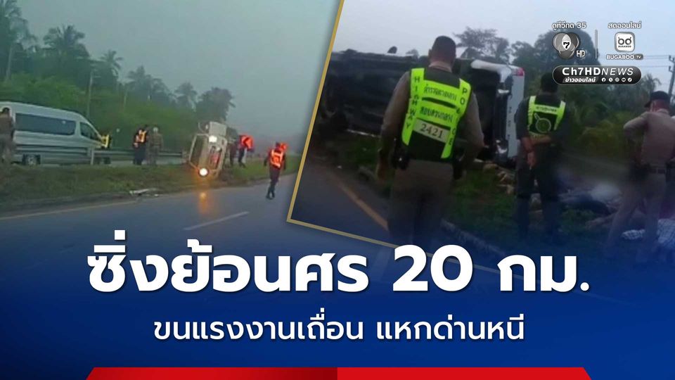 ล่าระทึก หนุ่มขับรถกระบะรับจ้าง 8 พันบาท ขนแรงงานเถื่อนชาวเมียนมา 12 คน แหกด่านหนี ซิ่งย้อนศร 20 กม. ก่อนแหกโค้งพลิกคว่ำ