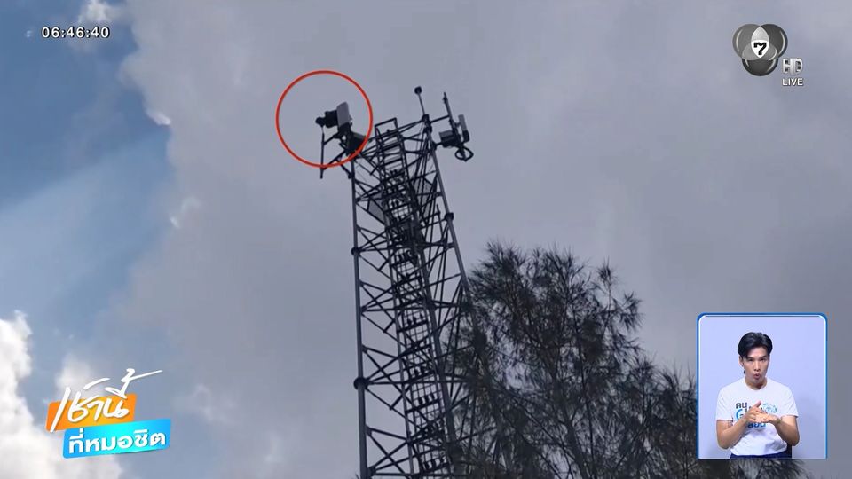 เช้านี้ที่หมอชิต - คนร้ายลักตัดสายไฟฟ้า ริมถนนมอเตอร์เวย์ M6 หนีความผิดปีนเสาสื่อสาร