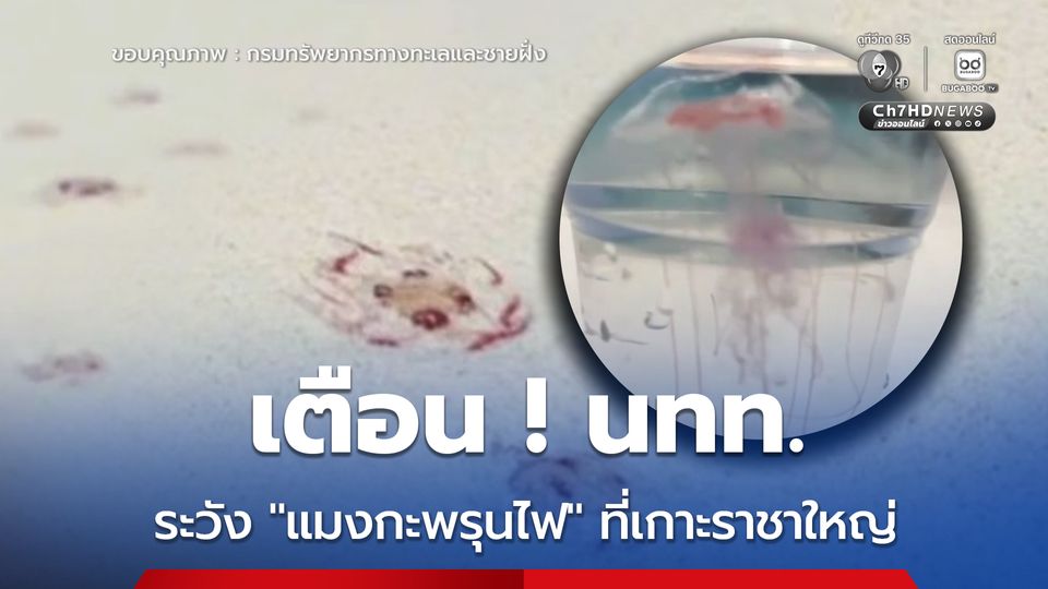 แจ้งเตือน นทท. พบแมงกะพรุนไฟเกยตื้นตลอดแนวชายหาดบริเวณ อ่าวสยาม เกาะราชาใหญ่ จังหวัดภูเก็ต ซึ่งสามารถก่อให้เกิดอาการปวดแสบ ปวดร้อน ระคายเคืองผิวหนัง หรือผื่นแดงเมื่อสัมผัส