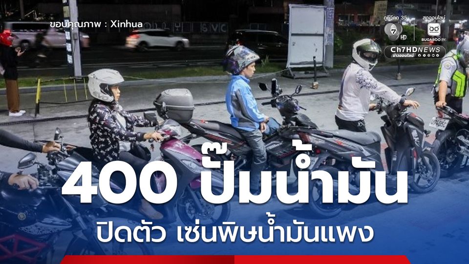 วันนี้ (24 มี.ค. 69) สำนักข่าวซินหัวรายงานว่า สำนักงานตำรวจแห่งชาติฟิลิปปินส์เปิดเผยเมื่อวันจันทร์ (23 มี.ค.69) ว่า สถานีบริการน้ำมันมากกว่า 400 แห่งทั่วประเทศ ได้หยุดให้บริการ เนื่องจากราคาน้ำมันพุ่งสูงขึ้น