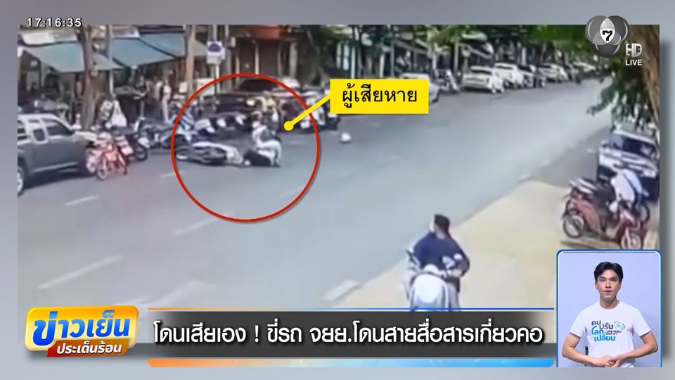 ข่าวเย็นประเด็นร้อน - เป็นปัญหาซ้ำซากที่เกิดกับคนใช้รถ ที่สายสื่อสารหล่นลงมาบนถนน แต่เหตุการณ์นี้ไปเกี่ยวคออดีตพนักงานเกษียณบริษัทสายสื่อสารเสียเอง ทำเอาหวิดคอขาด