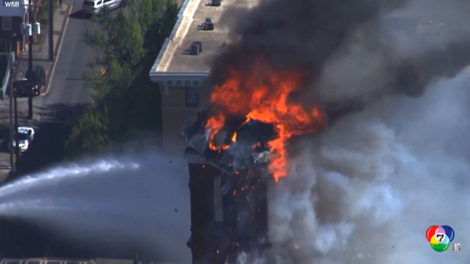 เกิดเหตุเพลิงไหม้อาคารประวัติศาสตร์ในรัฐจอร์เจีย ของสหรัฐฯ ทำให้ยอดอาคารพังถล่มลงมา
